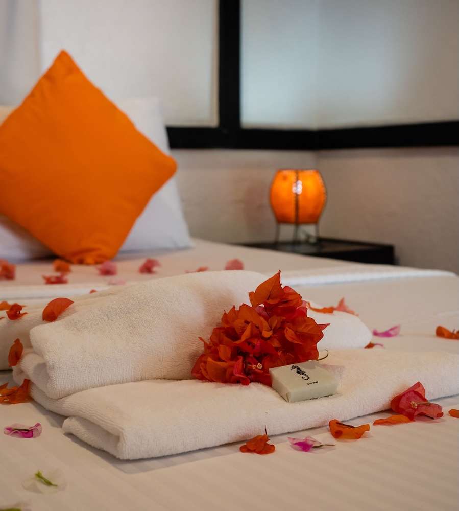 Larger size room than the Superior room, silent (split-type) air conditioning, hot water shower, room safe, ceiling fan, mini bar, electric kettle with coffee basket, terrace, situated DIRECTLY at the beach! We have 2 rooms on the bottom floor (both with twin beds) and two rooms upstairs (both with one big bed)