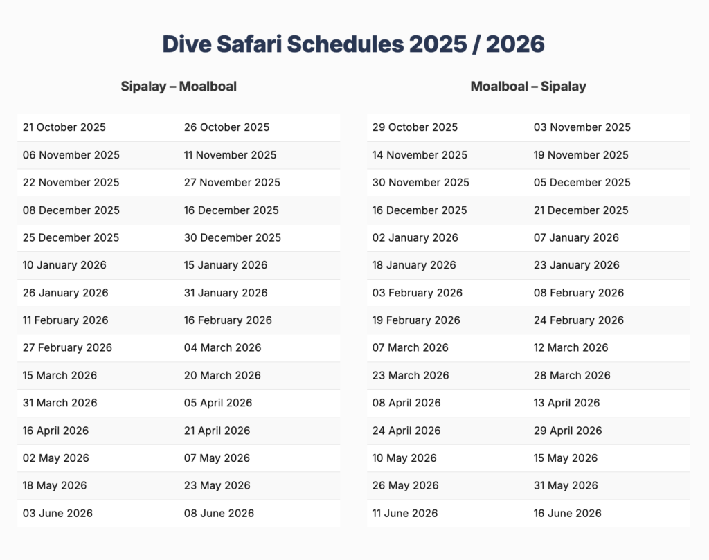 The design of dive safari boats are based on traditional Filipino fishing boats, called bankas. The boats used for dive safari are custom-built for scuba diving purposes. Every year, the boats are dry-docked and overhauled in the months of June to September. The management of the boats is Swiss.